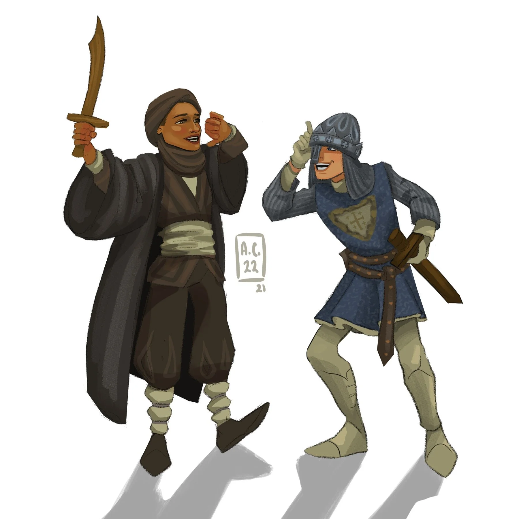 Atefeh will dress up as her father and play knights with Baldwin, causing such a din that the whole palace will stop to watch the royal children bash each other with wooden swords and scimitars.